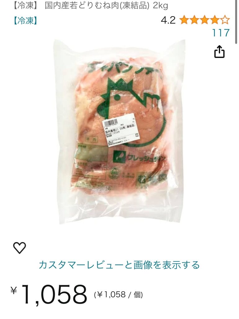 一方、2キロ冷凍鶏むね肉であればまとまった量を安めの価格で安定して仕入れることができます。