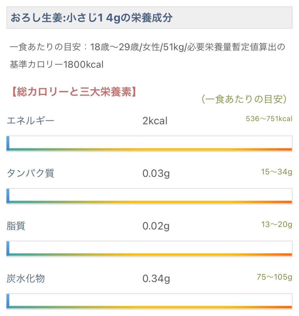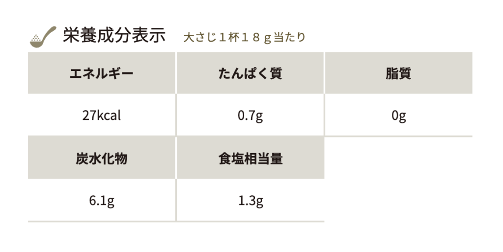 脂質はほぼなし。カロリーは一食20kcalほどで想定。