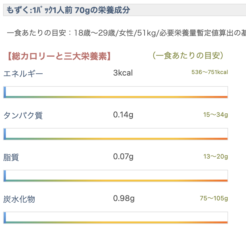 もずく自体がヘルシーな食品で、1パック30kcal前後。