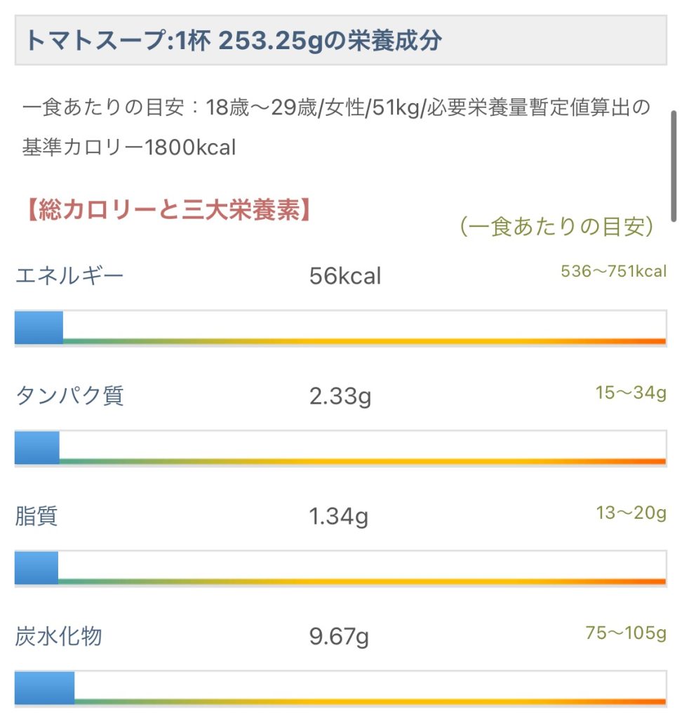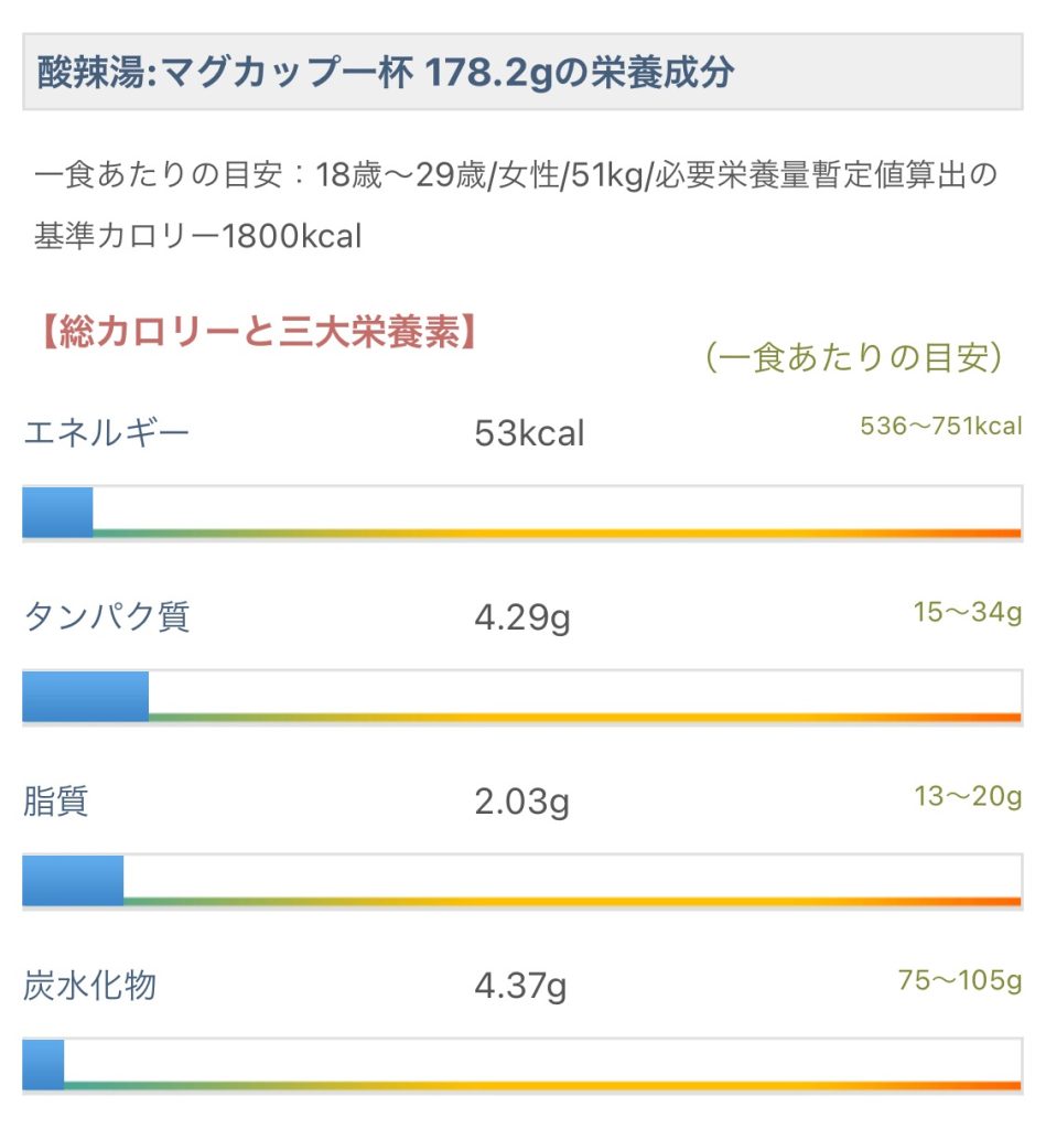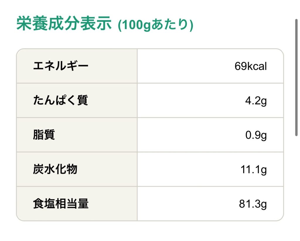 下記の画像(カロリースリムス)では56kcalだが、これはベーコンなど具を含んだ数値。