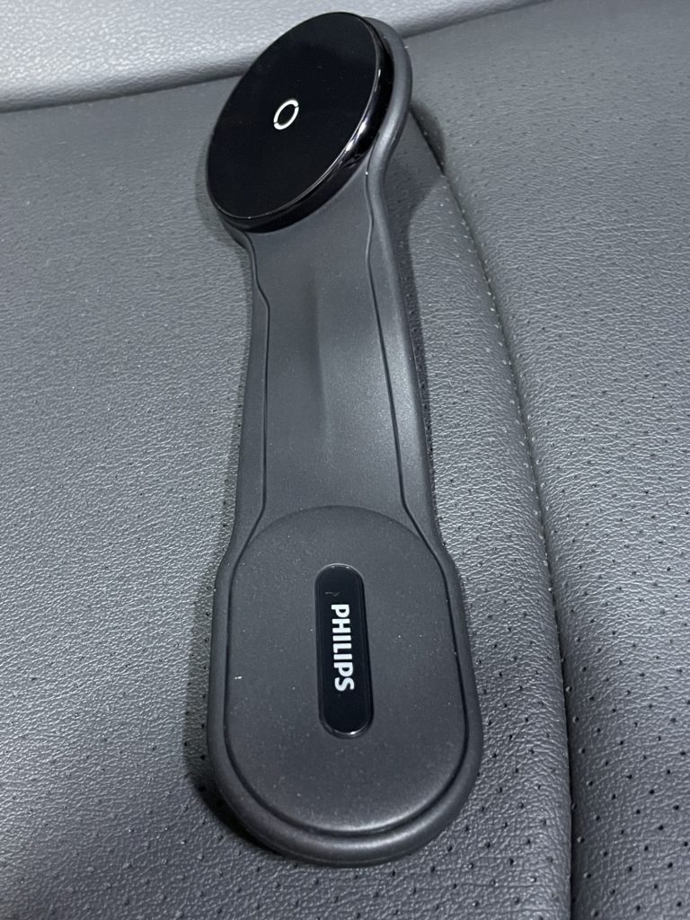 なのでL字型に曲げると固定部分の方(PHILIPSのロゴがある方)にスマホが来るようになります。