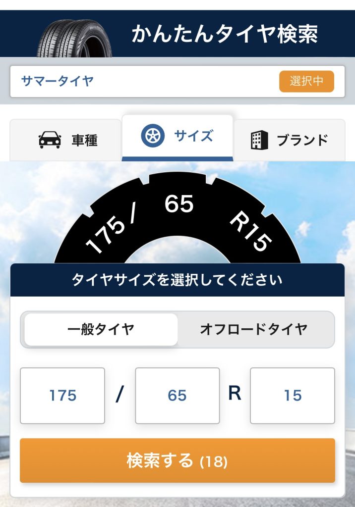続いてタイヤサイズを選択。