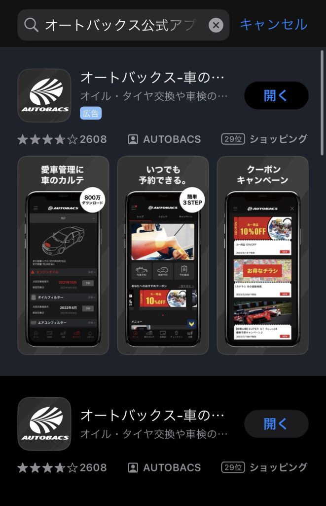 オートバックスのアプリをダウンロードします