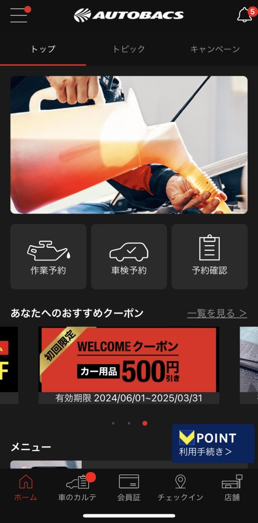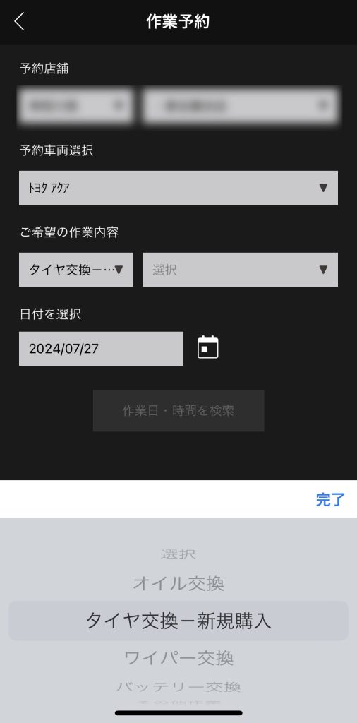 作業の予約はオートバックスのアプリで行います。