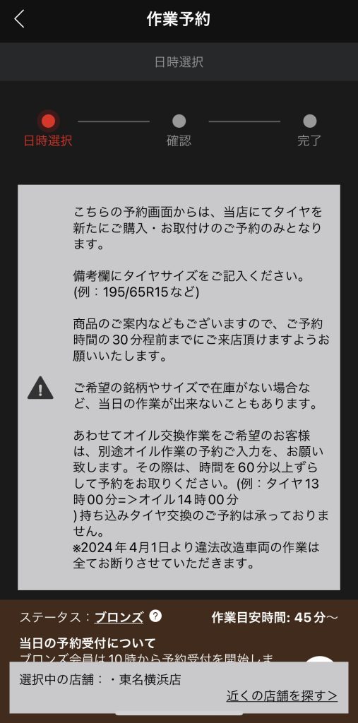 他のサイトでは購入の流れで作業予約まで出来るケースがあるので、戸惑うかもしれません。