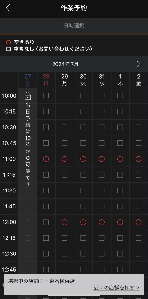 この時点で色々と調べた結果、別途アプリから作業予約が可能と判明。