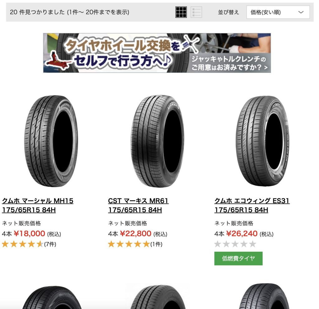 所謂「良いタイヤ」が多く、値段もまあまあ高かったです。