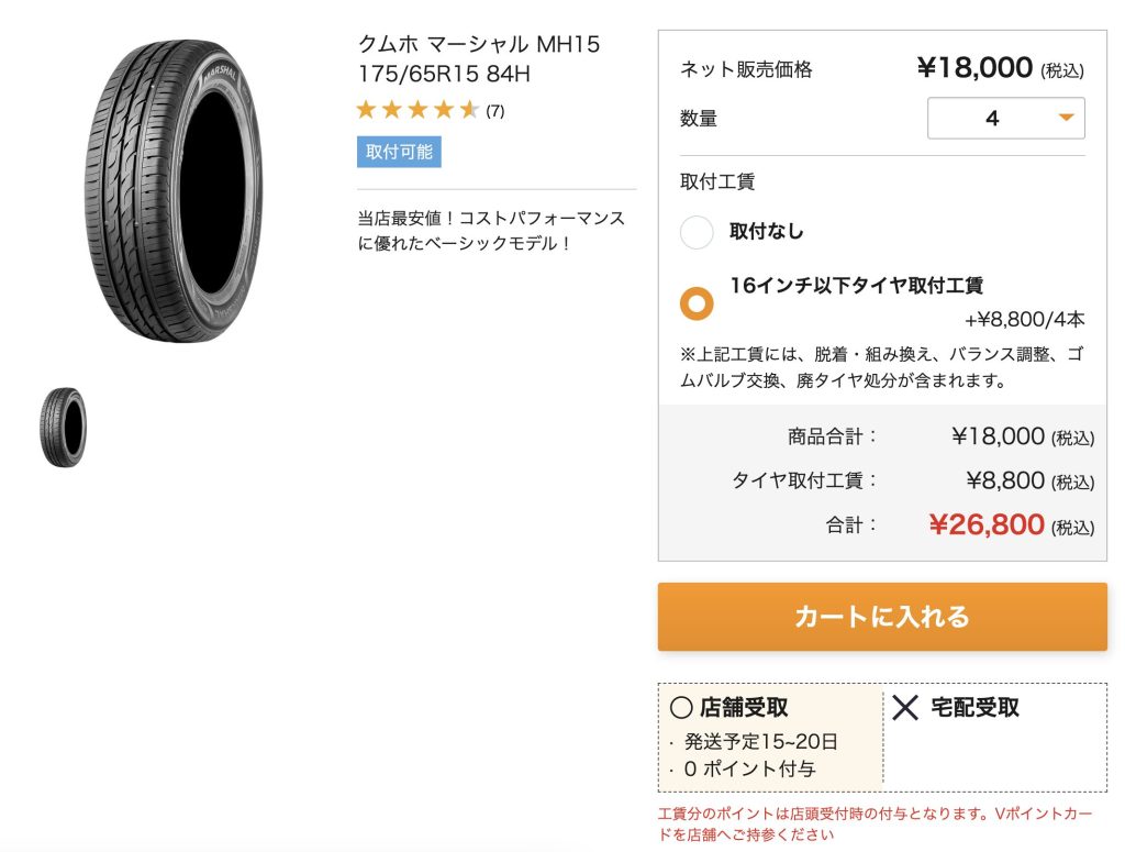 これなら「ネット購入→取り付け依頼」がスムーズでわかりやすいし、格安タイヤも購入できる。