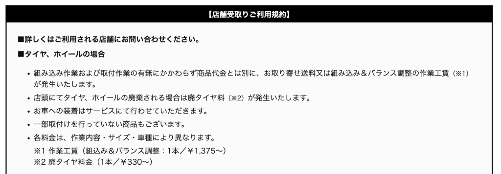 安いタイヤがありましたが、作業工賃が明記されていませんでした。
