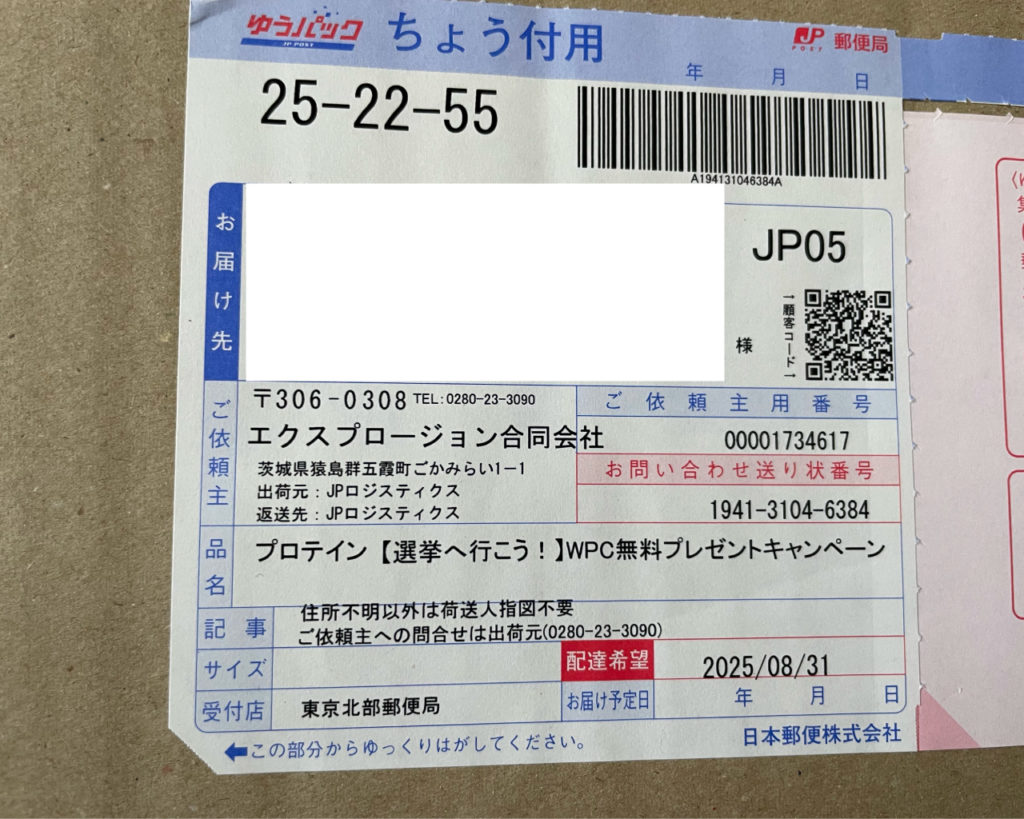 普段愛飲しているプロテインブランド、エクスプロージョン【X-PLOSION】さんが実施した「選挙に行こうキャンペーン」に応募していました。