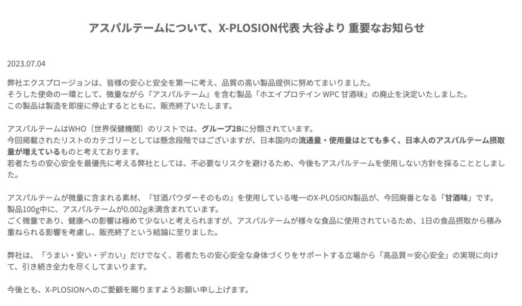 以前アスパルテームという成分について安全性に疑問が生じた商品は廃盤にし、リニューアルする対応を取っていました。
