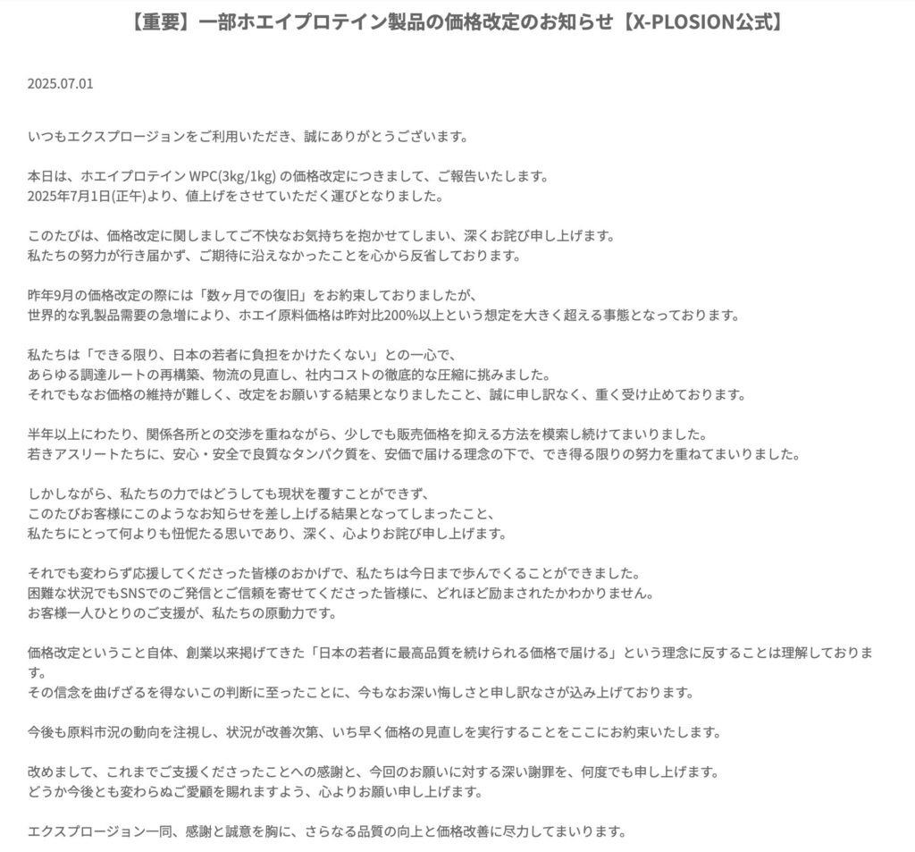 私が購入し始めてから、エクスプロージョン【X-PLOSION】では何度かの値上げをしています。